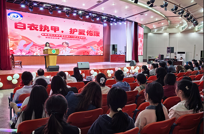 在翡翠路校区多功能厅举办主题为“白衣执甲、护爱佑康”的护士节文艺晚会,庆祝第114个国际护士节的到来,弘扬南丁格尔精神,增强职业价值认同。副校长洪静芳出席晚会并致辞。洪静芳在致辞中说,“护士是没有翅膀的天使,是真善美的化身”。从南丁格尔点燃那盏提灯开始,便择一事,终一身。大家此时此刻共同庆祝国际护士节,就是希望薪火相传,让心中的那盏明灯永远光芒万丈。洪静芳向全体护理工作者致以节日问候与崇高敬意,赞扬了学校护理教师一袭白衣化春风,追光而行,用行动诠释安医精神。她希望师生携手前行,以专业为帆,以热爱为桨,推动护理事业不断进步,创造真正有意义的改变。同时勉励同学们要了解老师们的护