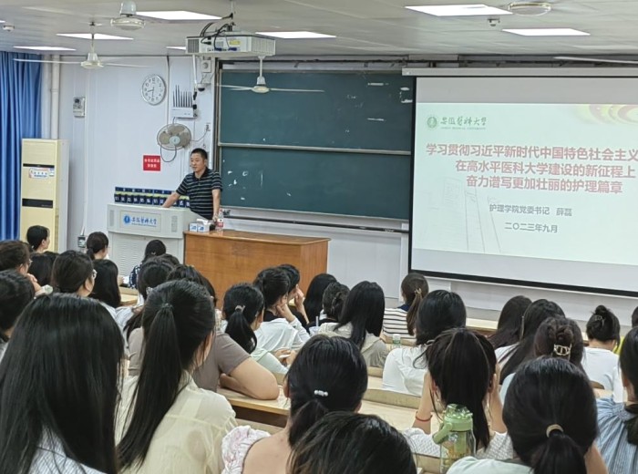 的办学历史。他勉励同学们要牢记医学生誓言,追寻前辈足迹,传承红色基因,秉承“好学力行,造就良医”的校训,将个人的发展同祖国前途、民族命运紧密联系在一起,践行“弘毅担当、精医报国、康民济世”的安医精神。他希望同学们热爱伟大祖国,锚定青春航向;练就过硬本领,勇攀专业高峰;锤炼品德修为,追求卓越人生,在未来的大学生活里云程发轫,万里可期。洪静芳为新生作了题为《惟健康承载幸福,以奋斗成就未来》的入学教育报告。她以“何为守护”这一问题切入,引发学生们思考,并围绕护理学等专业的专业价值、人生价值、社会需求,以及足球竞彩