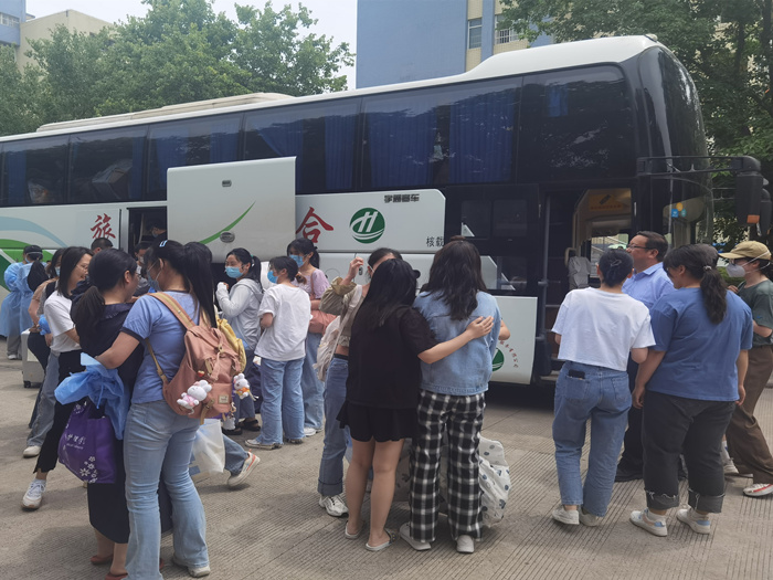 经过周密部署,我院于5月8日顺利将滞留上海的26名护理专业实习生接回合肥。当晚院领导到核酸检测现场慰问学生,虽然因为疫情只能远距离看望学生,但学生深受感动,师生的心理距离又进一步拉近。5月18日26名实习生解除隔离,乘坐足球竞彩 安排的大巴车返回校园,院领导、辅导员、学生志愿者早已在校园内等候着学生们归来,学生乘坐的大巴车一到,就受到热烈欢迎,大家纷纷上前帮忙搬运行李,至此26名学生顺利返回校园。从上海接回实习生返肥隔离到现在回到校园,全过程学校足球竞彩 细致而又温暖的一系列有力措施,得到实习生的一致认可和感谢。实习队长都欢感动地说“从上海到合肥隔离酒店,再到隔离结束重新投入校园怀抱,这些天我们感受到学校和足球竞彩 领导老师对我们无微不至的关怀,这些都离不开学校和足球竞彩 各位领导和老师的辛苦付出,语言已经难以表达我们此刻内心的感动感谢之情”。