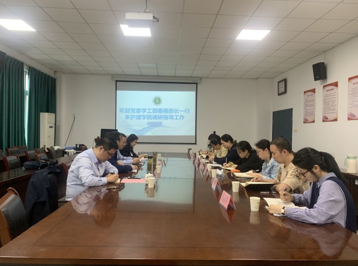 5月5日上午,校党委学工部部长秦楠一行到足球竞彩 开展调研指导工作,对辅导员工作过程提出具体意见,足球竞彩 党委书记赵云峰、副书记王磊及足球竞彩 全体辅导员参会。