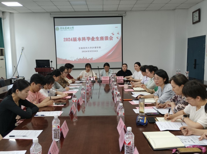 5月24日,足球竞彩 召开2024届本科毕业生座谈会,聚焦强化护理专业教育教学质量及学生专业认同感,多措并举提升人才培养质量。该院副院长赵梅主持座谈会。
