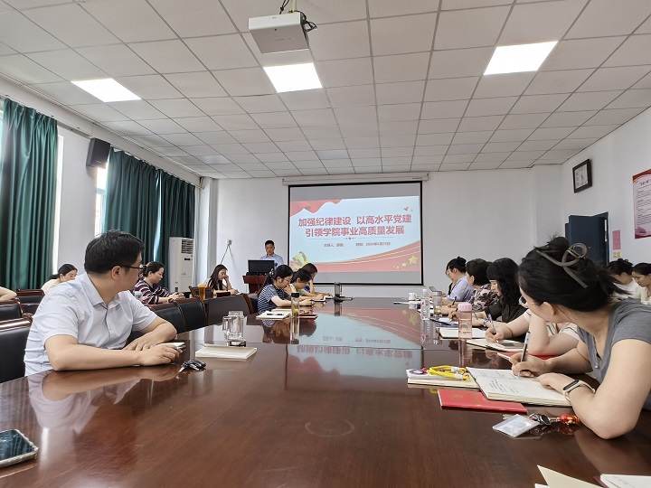 6月25日下午,足球竞彩 举行党委理论学习中心组学习(扩大)会暨党纪学习教育专题党课,集中学习了《习近平关于全面加强党的纪律建设论述摘编》部分内容。该院党委书记薛磊以《加强纪律建设 以高水平党建引领足球竞彩 事业高质量发展》为题讲授专题党课。