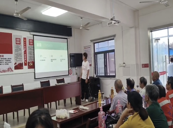 在小庙镇高岗村退役军人服务站,实践队还开展了简单的义诊活动,为村民测量血糖、血压,用专业知识和通俗易懂的语言,普及高血压、冠心病等各种常见病的发病表现及预防措施,并为村民提供就诊意见。在社区医生指导下,实践队成员不仅开展知识宣传,还提供个性化的生活指导方案,助力居民养成健康的生活方式。