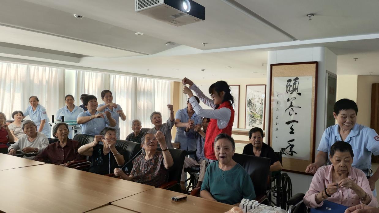 活动前,薛磊与老人话家常,详细了解老年人的身体、生活方面的情况,耐心倾听老人家的心声,叮嘱他们要保持一个好心态,积极锻炼,祝福老人家安享晚年。活动以中国传统手工艺——中国结的制作拉开帷幕。两位志愿者首先演示了中国结的制作过程,随后志愿者们手把手地教老人们制作。老人们在志愿者的帮助下,互帮互助,共同完成了一个个精美的中国结。黏黏球比赛中,老人们被分成两组进行比赛,这个游戏不仅锻炼了老人们的身体协调能力,锻炼了老人们的动手能力,还激发了他们的团队合作精神。