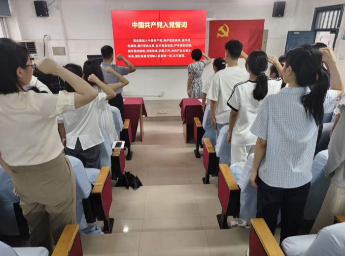 足球竞彩 持续打造“党建领航,天使成长”党建特色品牌,将入党宣誓仪式作为加强党性教育的有效载体以及足球竞彩 “天使成长计划”的重要环节,通过这一庄严的仪式教育,引导新党员通过“天使成长计划”实践平台锤炼政治品格、提升专业素养,把入党誓词转化为终身践行的政治承诺。