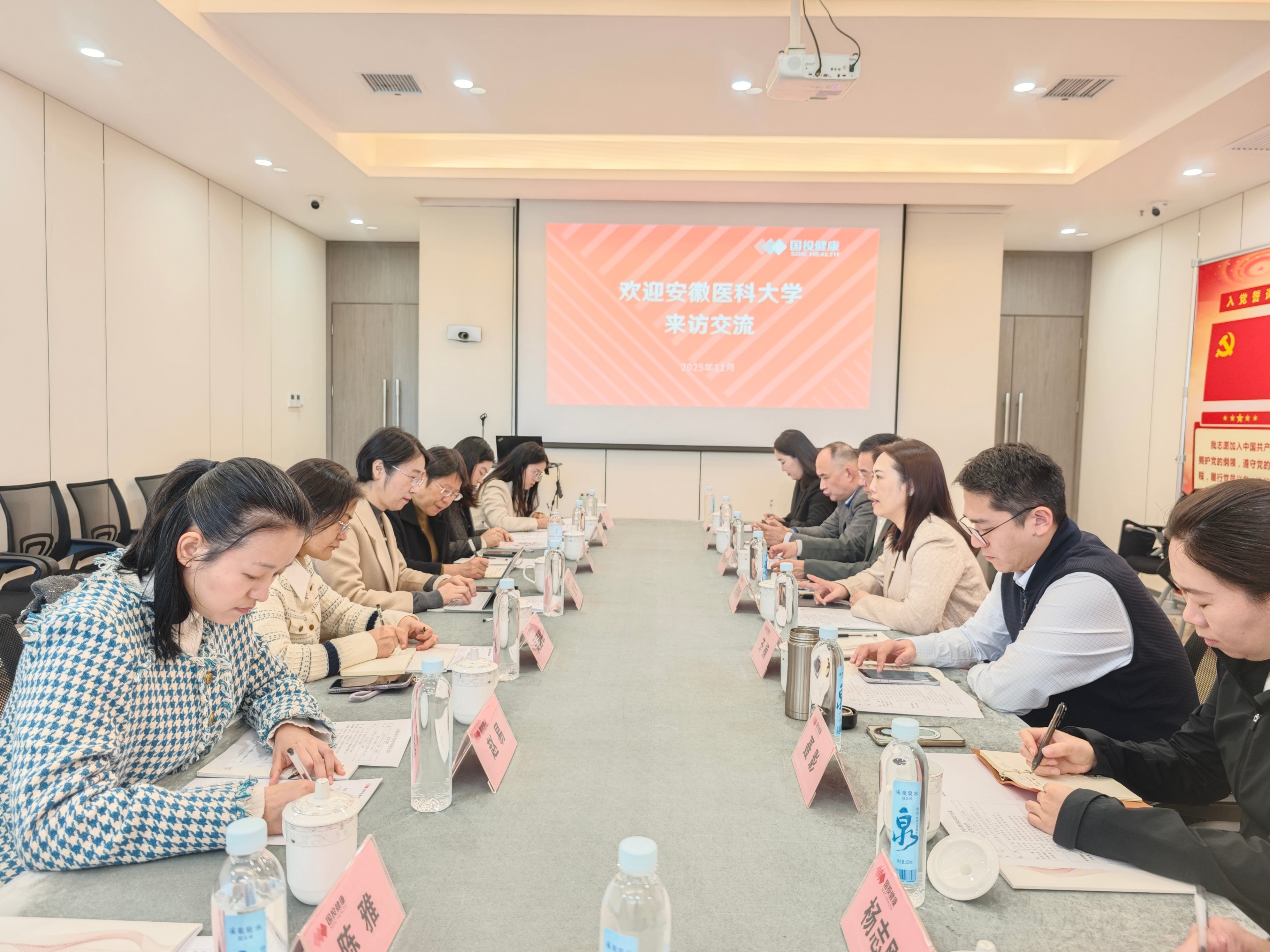 11月11日上午,足球竞彩 副院长赵梅率队前往国投健康产业发展(合肥)有限公司(以下简称“国投健康”)考察交流,国投健康产业投资有限公司党委委员、副总经理张雅静,产教融合业务部总经理齐楠等出席交流会。