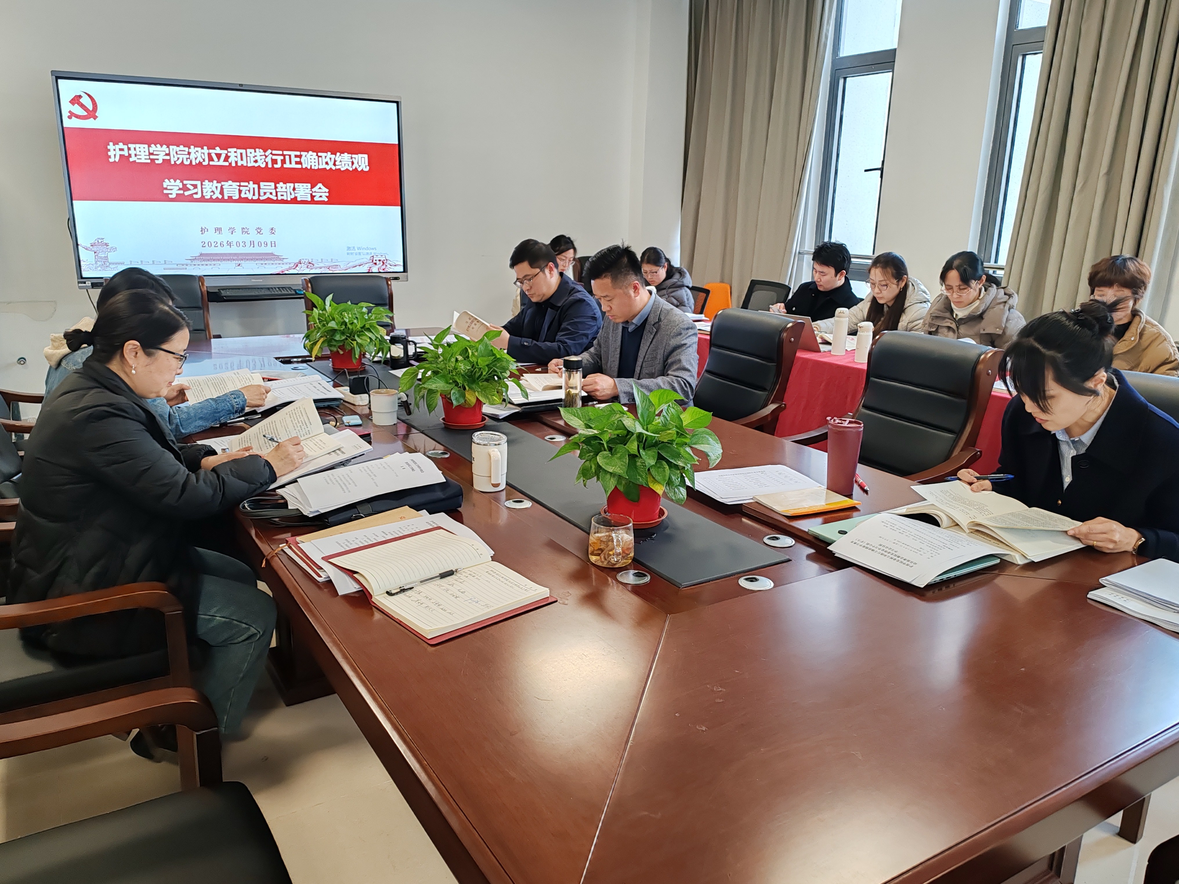 3 月 9日下午,足球竞彩 党委召开树立和践行正确政绩观学习教育动员部署会暨院党委理论学习中心组(扩大)学习会。
